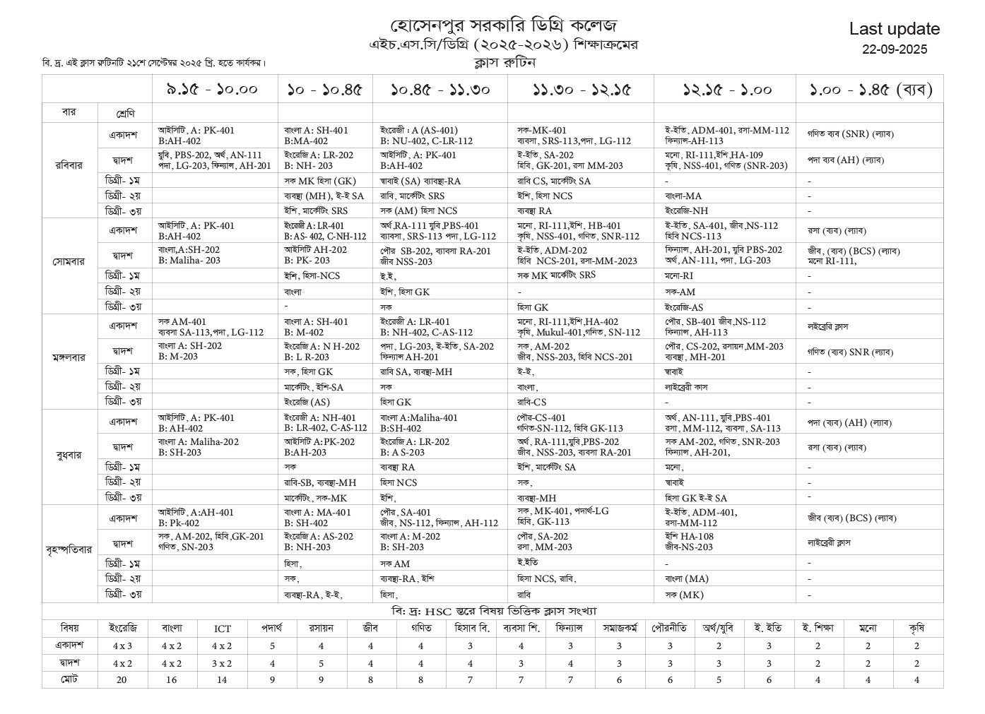 ** স্নাতক (সম্মান) প্রথম বর্ষ ২০২৫-২০২৬ শিক্ষা বর্ষের ভর্তি বিজ্ঞপ্তি প্রকাশ 27 Nov, 25 ** ** ডিগ্রি প্রথম বর্ষ ২০২৪-২০২৫ শিক্ষা বর্ষের ভর্তি বিজ্ঞপ্তি প্রকাশ 04 Nov, 25 ** ** ডিগ্রি ২য় বর্ষের ভর্তি ও ইনকোর্স পরীক্ষা ২০২৫ এর বিজ্ঞপ্তি প্রকাশ 12 Oct, 25 ** ** ডিগ্রি ১ম বর্ষের ফর্ম পূরণ বিজ্ঞপ্তি ২০২৪ 22 Sep, 25 ** ** আন্ত:শিক্ষা বোর্ড কর্তৃক ২০২৫-২০২৬ সেশনের এইচ এস সি একাদশ শ্রেণির ভর্তির সময়সীমা বৃদ্ধি করা হয়েছে। 16 Sep, 25 ** ** ২০২৫_২০২৬ শিক্ষা বর্ষে এইচ এস সি একাদশ শ্রেণির ভর্তি বিজ্ঞপ্তি। 04 Sep, 25 ** ** ব্যবস্থাপনা ২য় বর্ষের ভর্তি বিজ্ঞপ্তি ২০২৫ 04 Sep, 25 ** ** ঈদ-ই-মিলাদুন্নবী ২০২৫ খ্রি. উদযাপন 06 Sep, 25 ** ** ২০২৫_২০২৬ শিক্ষা বর্ষে এইচ এস সি বিএমটি একাদশ শ্রেণির ভর্তি বিজ্ঞপ্তি। 24 Aug, 25 ** ** অনলাইনের মাধ্যমে শিক্ষার্থীদের প্রতিষ্ঠানের একাদশ শ্রেণীতে এডমিশনের ফর্ম পূরন ও ফি প্রদানের পদ্ধতি। 24 Aug, 25 ** ** হোসেনপুর সরকারি ডিগ্রি কলেজে ২০২৫ সালের এইচএসসি একাদশ শ্রেণীর ভর্তি বিজ্ঞপ্তি। 29 Jul, 25 **